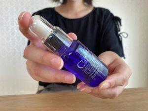 数滴を手に落とし、肌全体に馴染ませていきます。これはちょっと出しすぎちゃったので首のマッサージもできました(笑